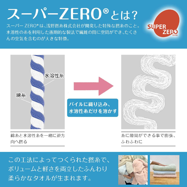 これによってふんわりしたボリュームと軽さを両立したタオルが生まれます。