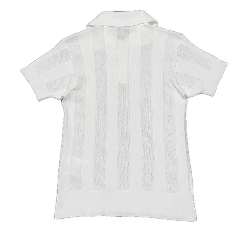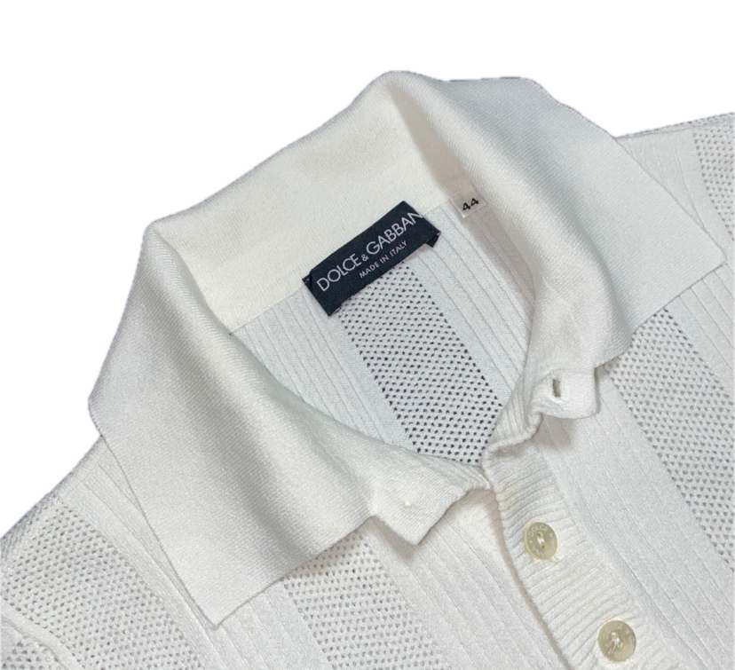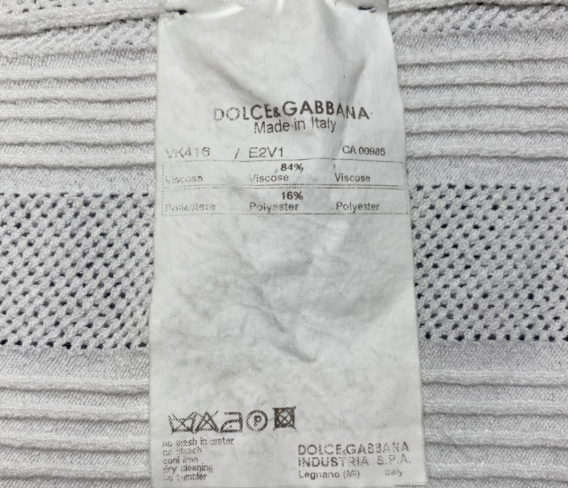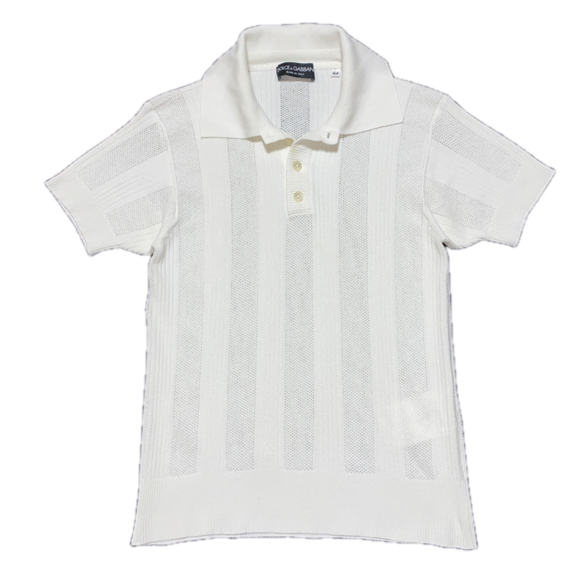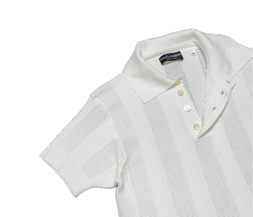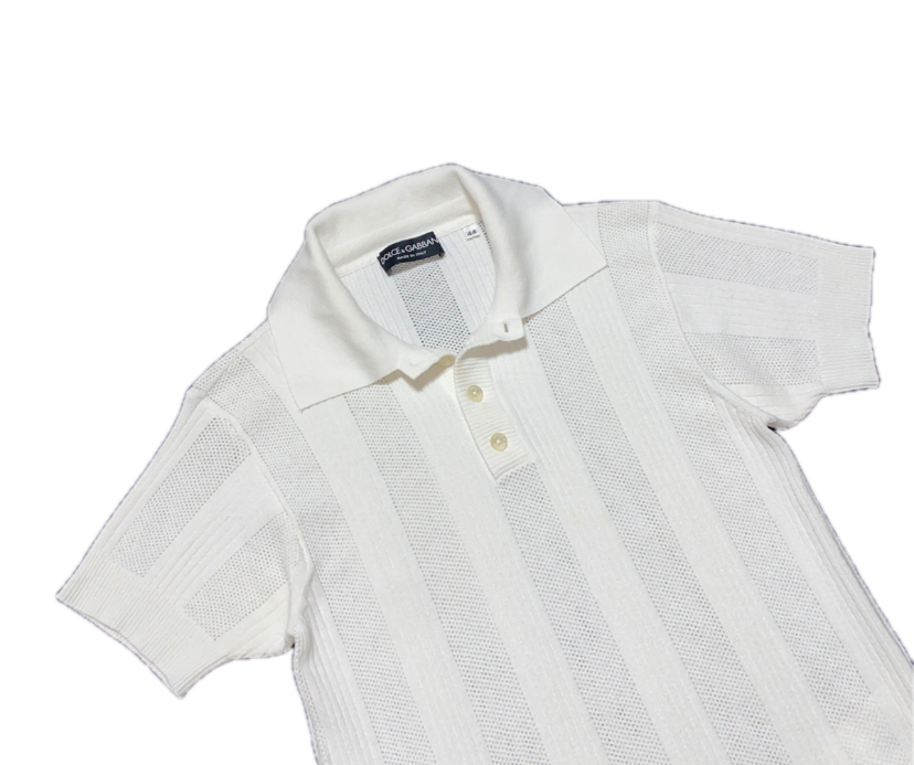 春夏メンズ DOLCE&GABBANA ドルガバ ビスコースxポリエステル ストレッチ メッシュ編み リブ編み ストライプ 半袖 シャツ サマーニット