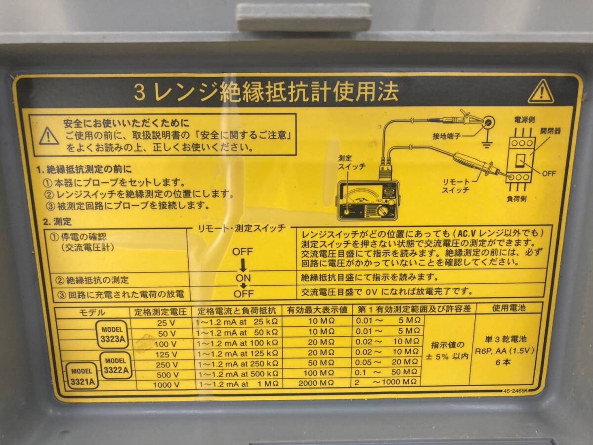 【中古品】【0924】★共立電気計器 (KYORITSU) 3322A キューメグ 3レンジ絶縁抵抗計 ITVPD87SWLO8