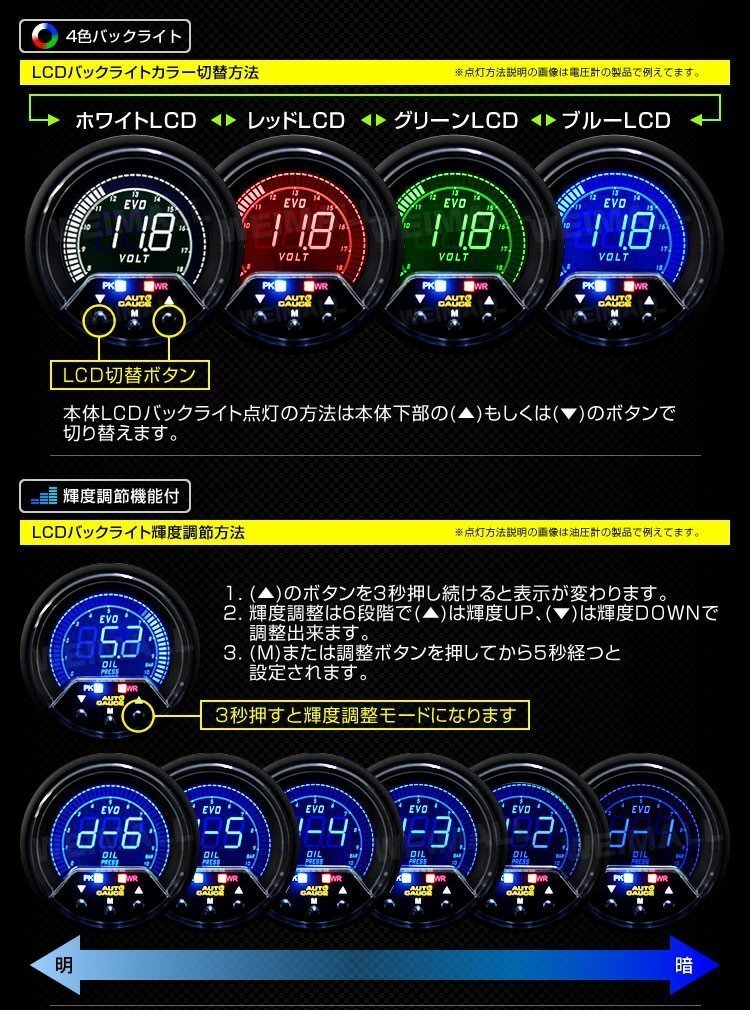 Product name: 新オートゲージ 油温計 60mm EVO 4色切替 高性能LCD仕様 静音 デジタルゲージ 追加メーター ワーニング ピーク機能 [456]