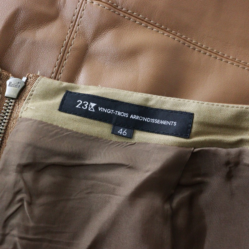 Product name: 大きいサイズ 23区 オンワード樫山 シンセティックレザースカート 46|ブラウン フェイクレザー ロング フレア【2400014562989】