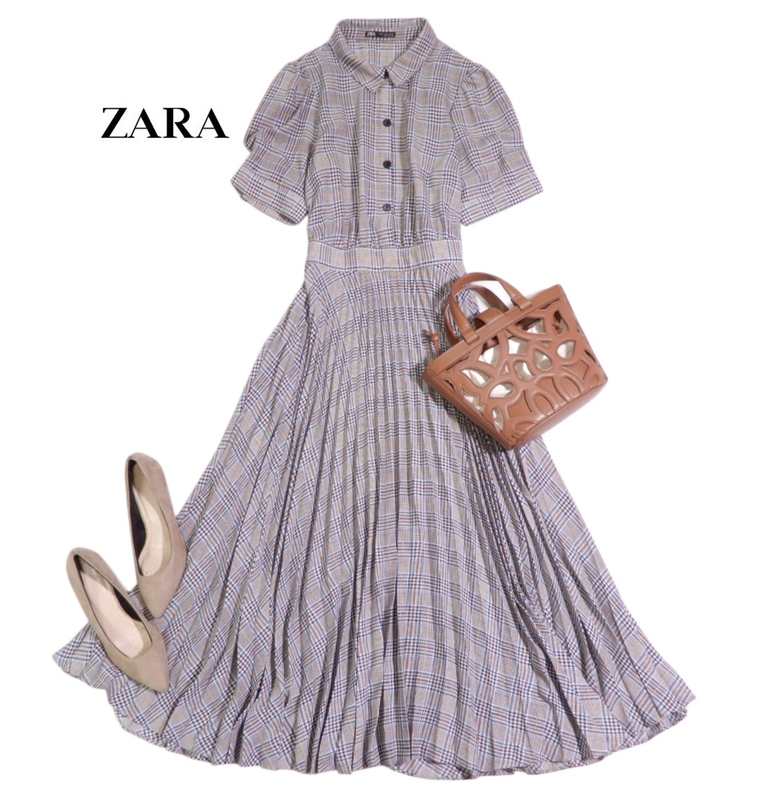 ザラ ZARA 大人素敵スタイル☆グレンチェック プリーツスカート ワンピース xs