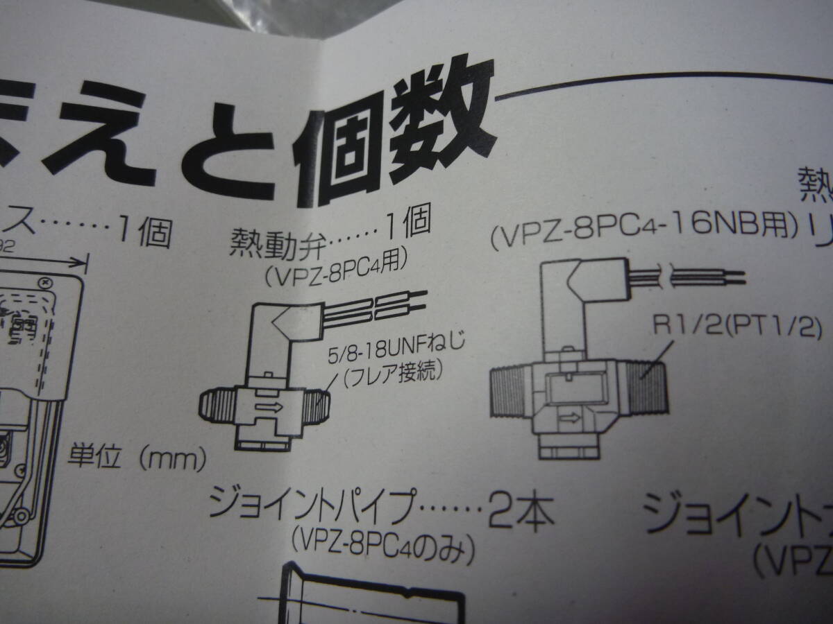 熱動弁本体(接続リード線付属) 未使用品 三菱電機VPZ-8PC4の構成部品の一部(日本サーモスタッド(株)製)5/8-18UNFネジ(フレア) 温水床暖房用配管部材 になります。価格は1個当たりのもので、最大合計3個まで注文可能です。2025年28日に購入したものです。よく仕様を確認の上、注文間違いが無い様にお願いします。尚、コントローラ及び制御ボックスは付属しませんのでご注意下さい。不良品を除き返品不可とさせて頂きます。よろしくお願いいたします。