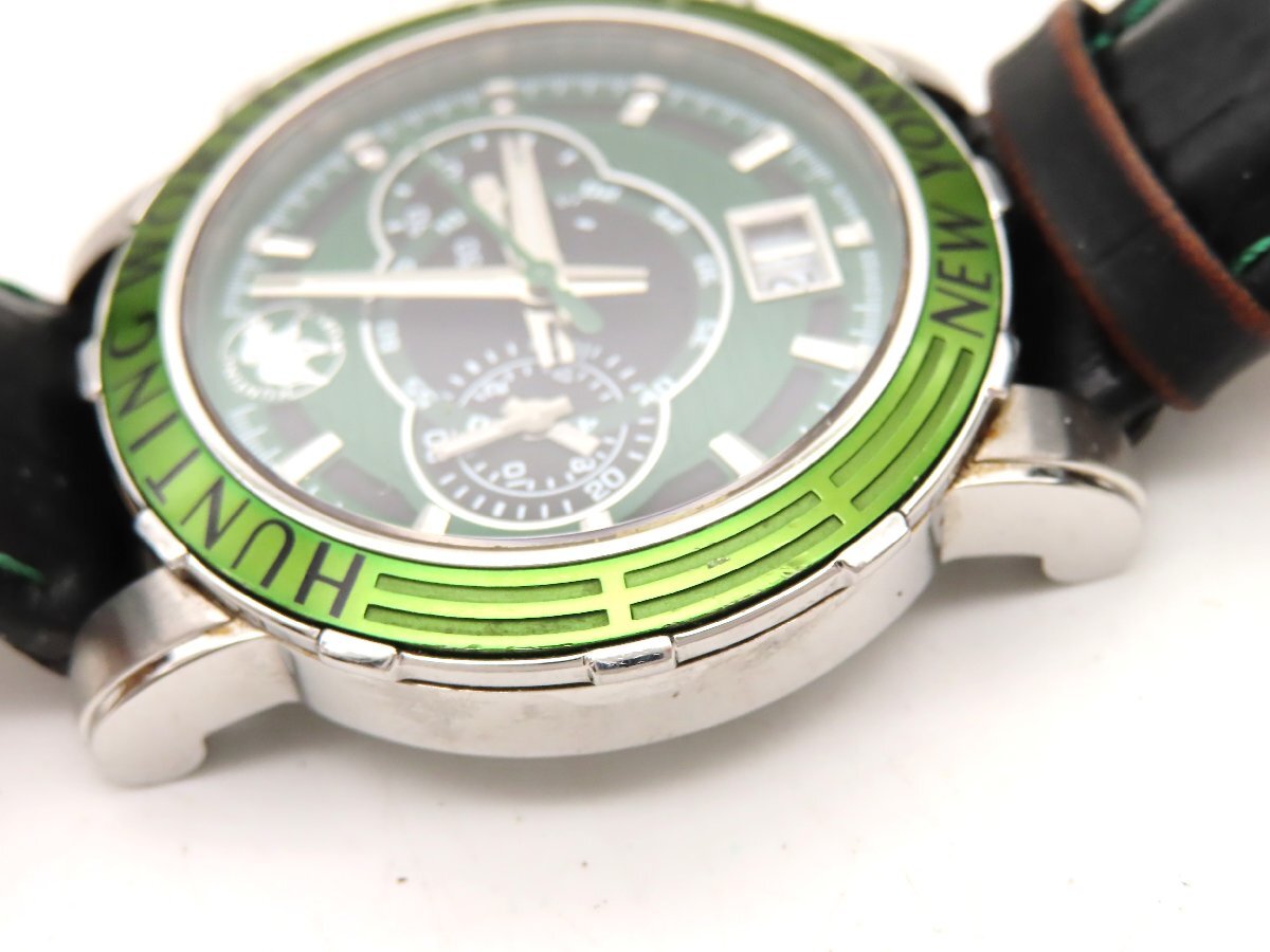 1円 ハンティングワールド HW-913 イリス SS/革 グリーン文字盤 メンズ 稼働 QZ 24085 KRB