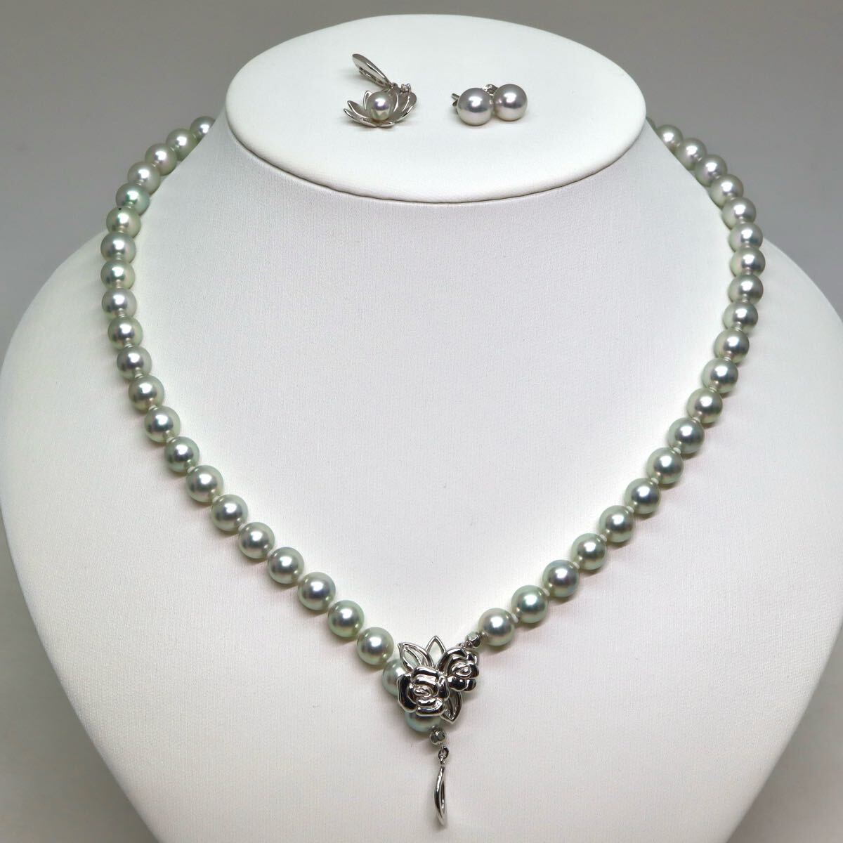 K18WG入り!!TASAKI(田崎真珠)箱/証明書付!!約7.0-7.5mm珠【セット売り】■アコヤ本真珠ネックレス&ピアスおまとめ■A 約39.4g EB7/ED9 U43