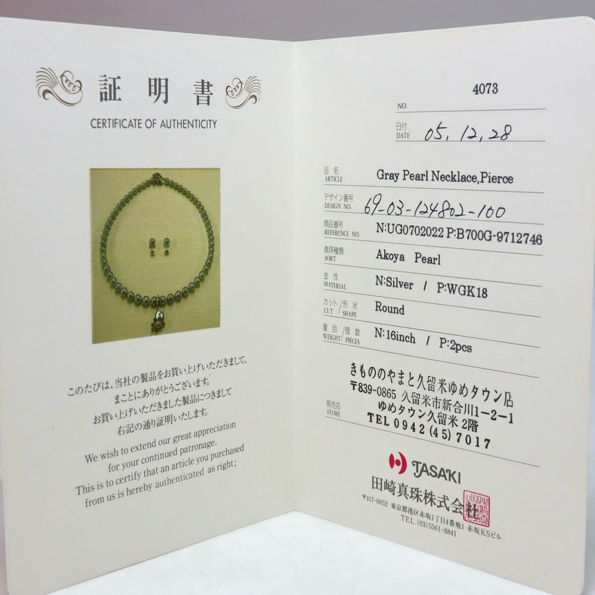 Product name: K18WG入り!!TASAKI(田崎真珠)箱/証明書付!!約7.0-7.5mm珠【セット売り】■アコヤ本真珠ネックレス&ピアスおまとめ■A 約39.4g EB7/ED9 U43