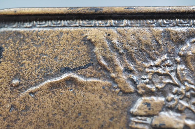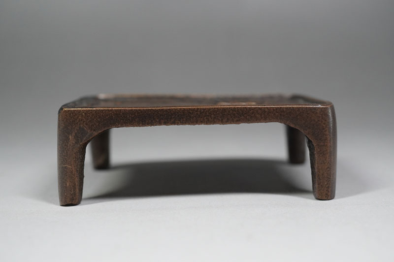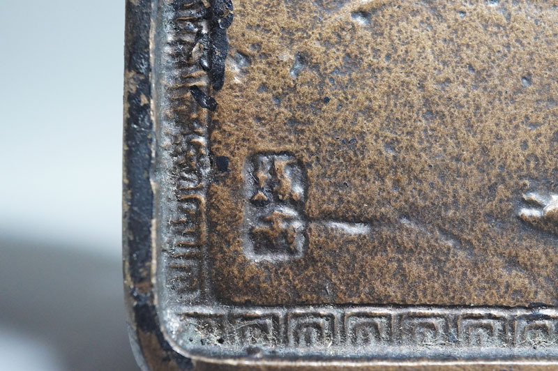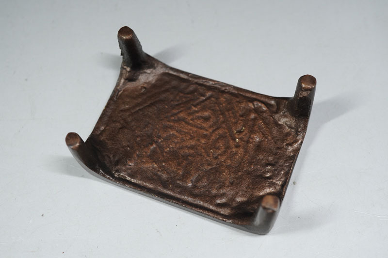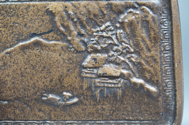 【H580】佐渡の名工 【本間琢斎】 山水図 山水文 銅製 墨台 墨床 墨置 書道具