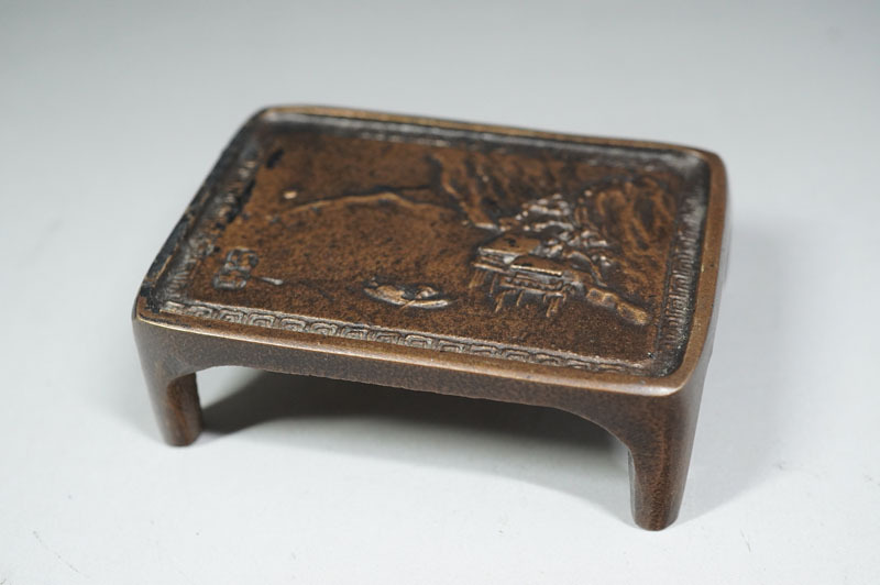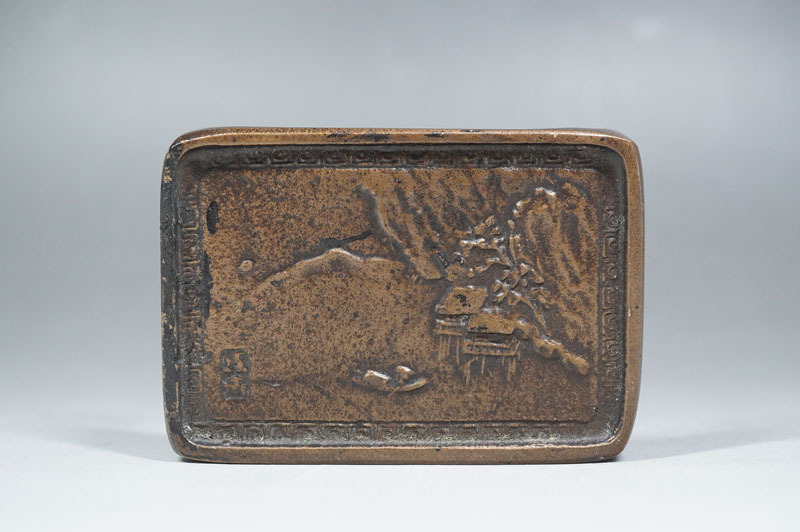 Product name: 【H580】佐渡の名工 【本間琢斎】 山水図 山水文 銅製 墨台 墨床 墨置 書道具