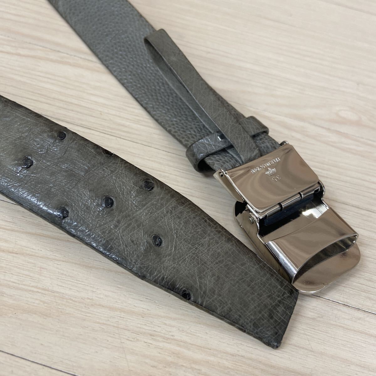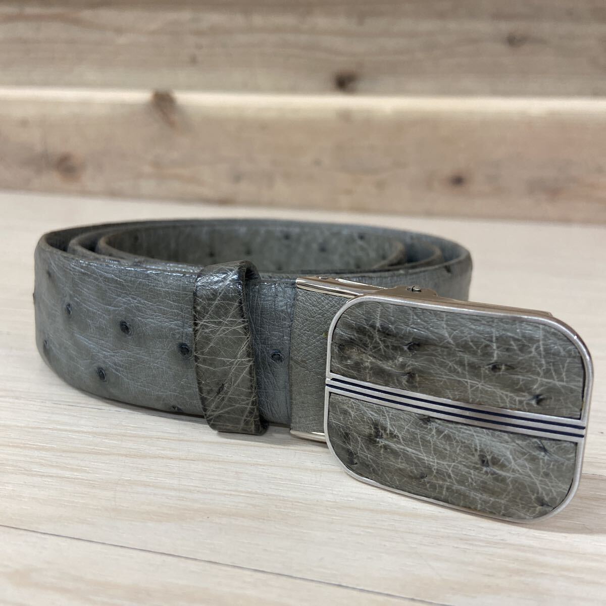 5 オーストリッチ ベルト 全長120cm 幅3.3cm 茶 駝鳥 エキゾチックレザー 男性用 メンズ サイズ調整可