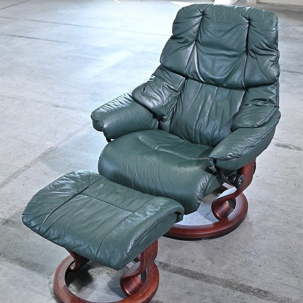 ノルウェー製 EKORNES 46万「Reno/レノ」ストレスレスチェア オットマンセット リクライニング 1人掛けソファ 書斎 北欧 エコーネス