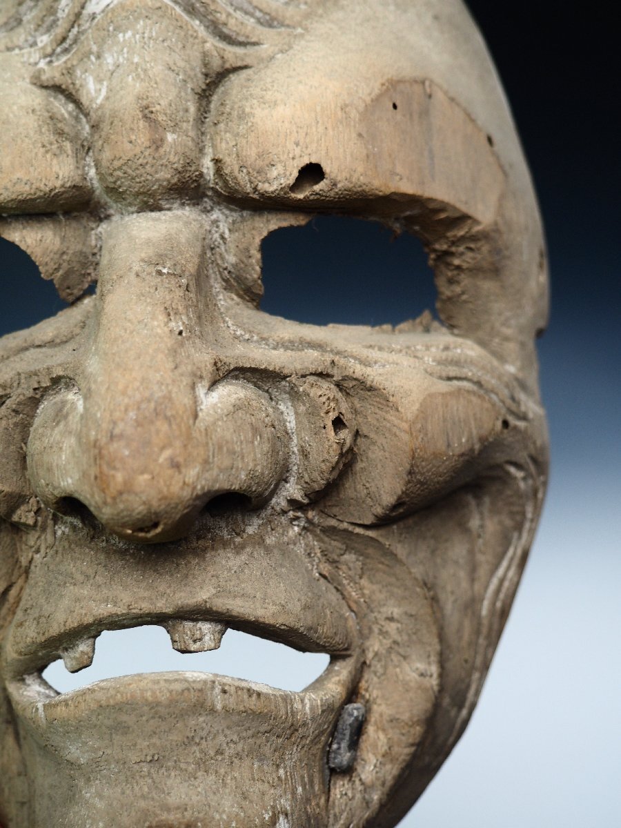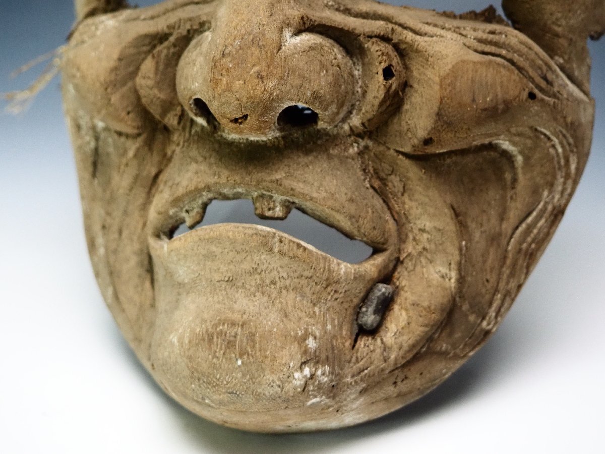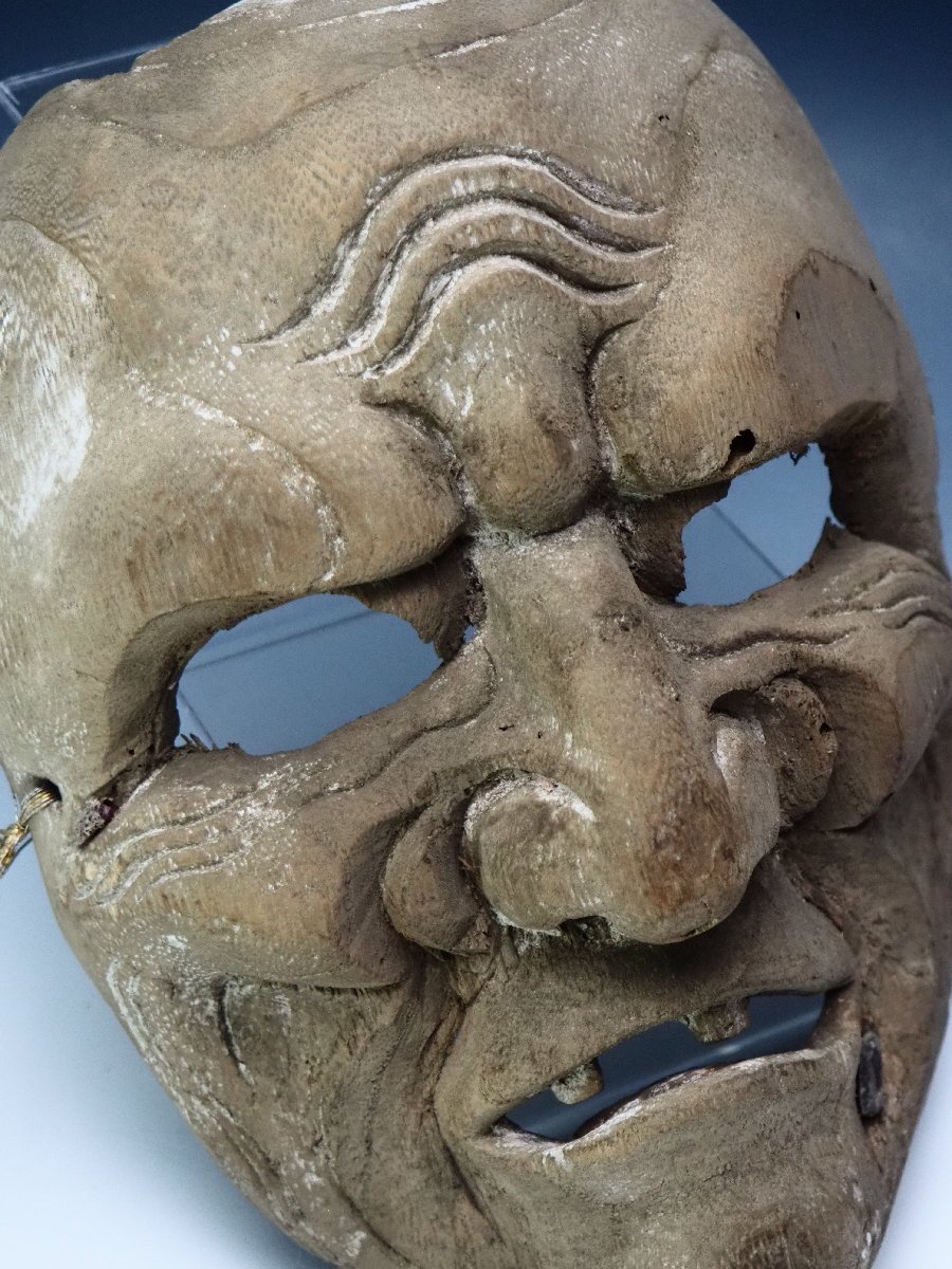 Product name: 【治】時代能道具 木彫 能面☆高さ 19.7cm (検索:老女 山姥 狂言面 古い 古面 時代 古作 狂言 舞楽 能楽 雅楽 能面 神楽面 面) CI043