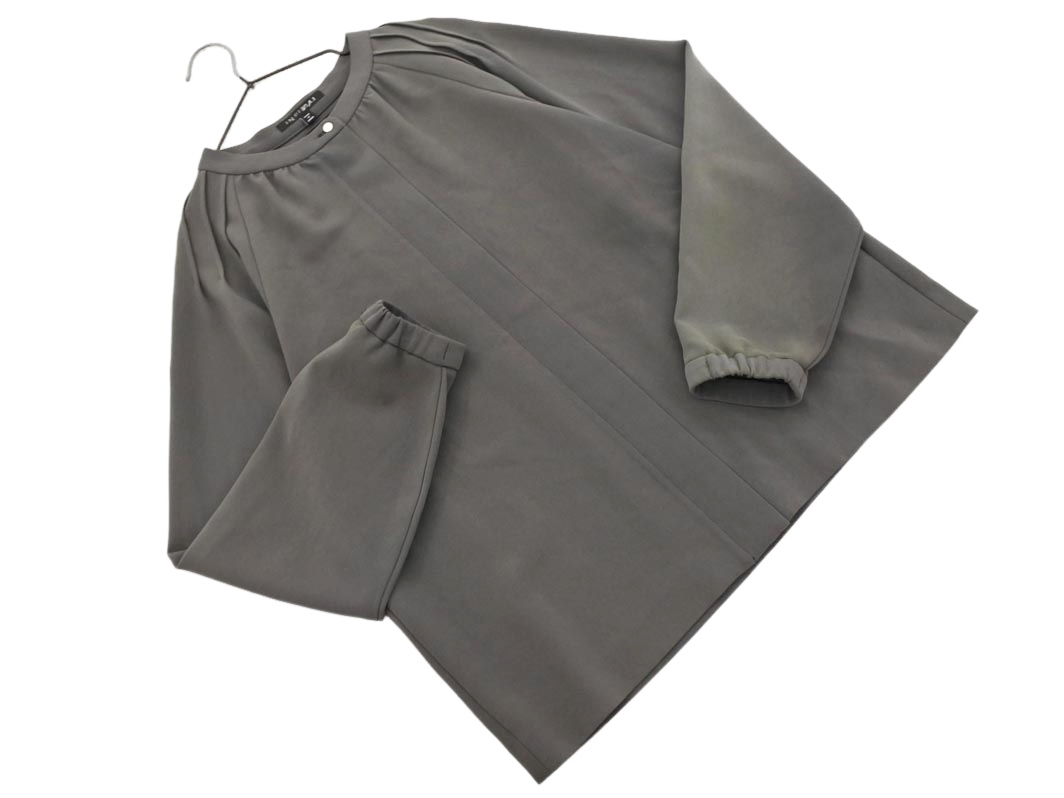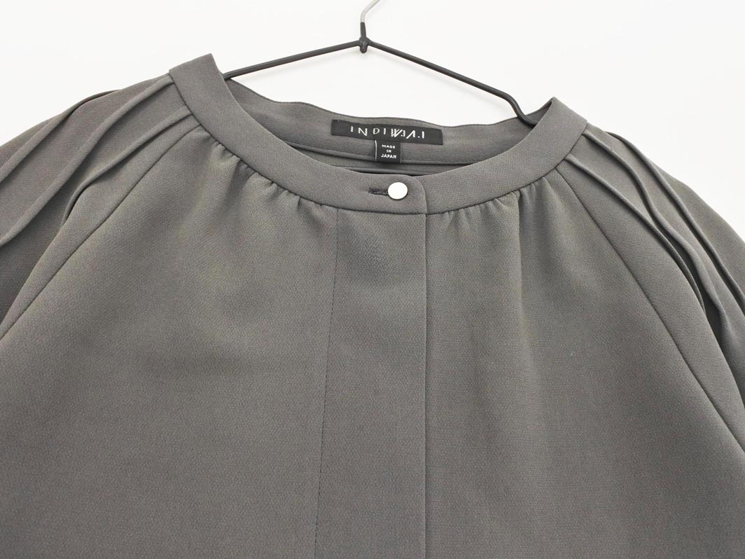 INDIVI インディヴィ タック バンドカラー ジップアップ ブラウス シャツ グレー ◇■ ☆ fib1 レディース