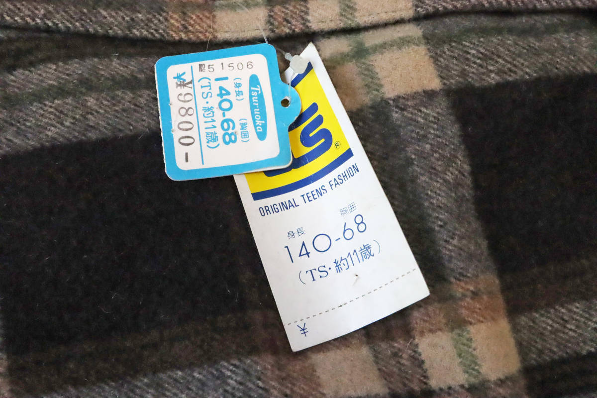 1761  昭和レトロ 男の子 130-140㎝ コート 裏ボア ブラウン チェック  新古品 未使用 長期保管品
