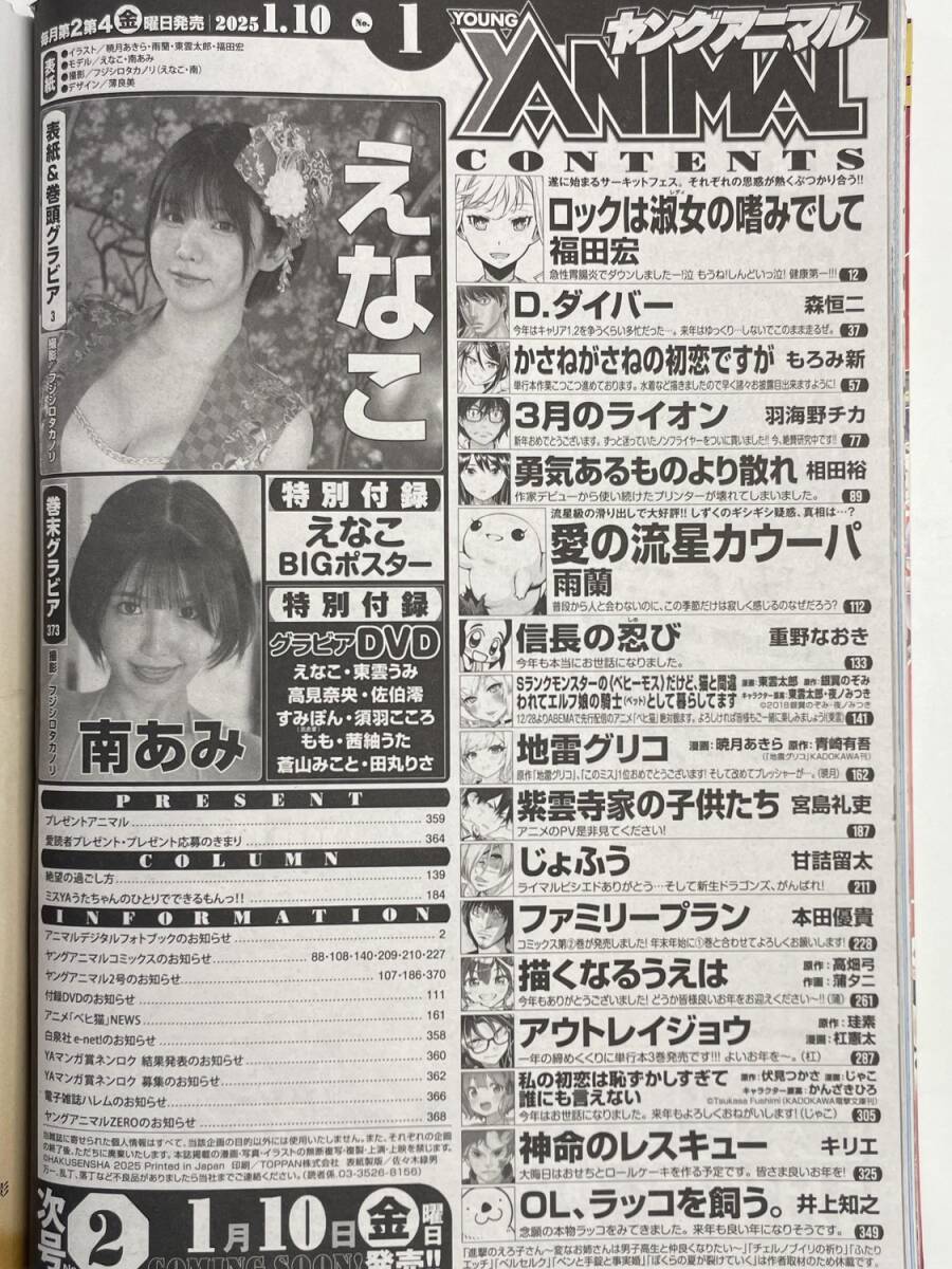 ヤングアニマル 2025 1号 W えなこ他DVD えなこBIG 付属付属DVD付き