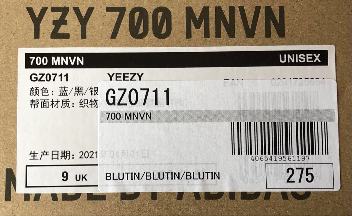 adidas アディダス YEEZY BOOST 700 MNVN 27.5cm BLUTIN タグ付き 箱付き