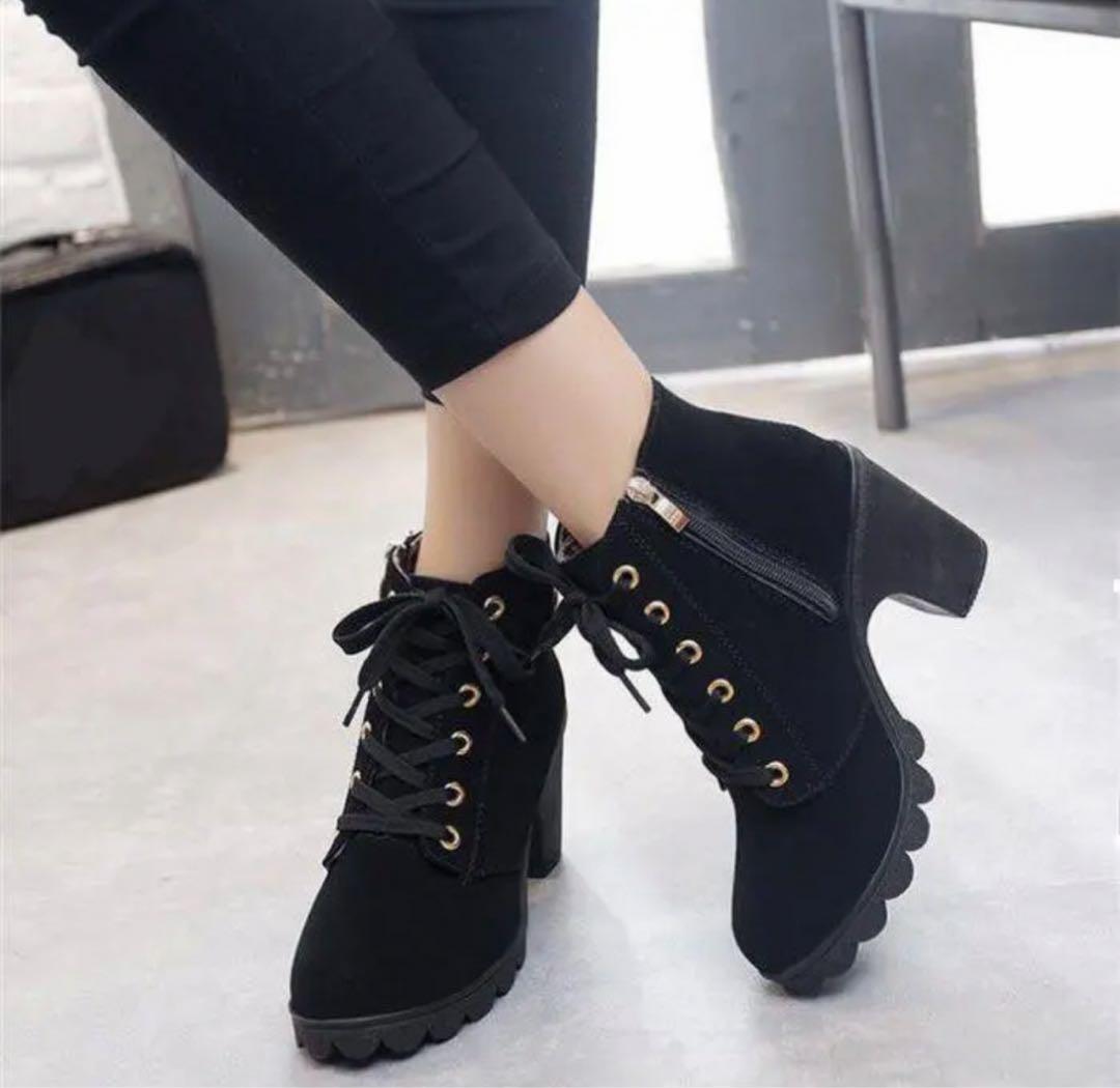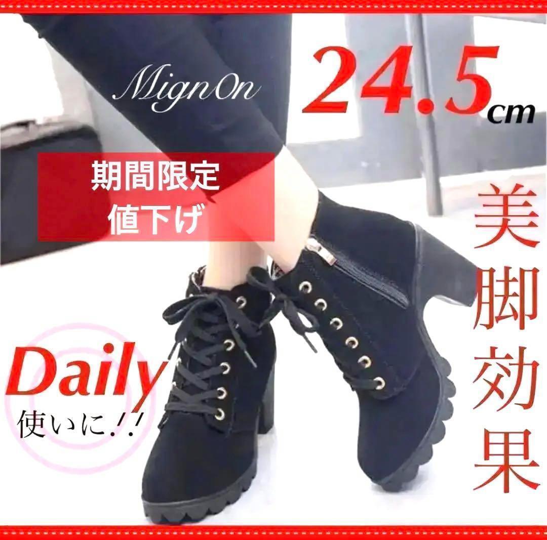Product name: 人気 ショートブーツ《黒 24.5》ブーツ 太ヒール ブーティ 美脚効果 シンプル 合わせやすい サイドゴア 安定感 歩きやすい 疲れにくい 379