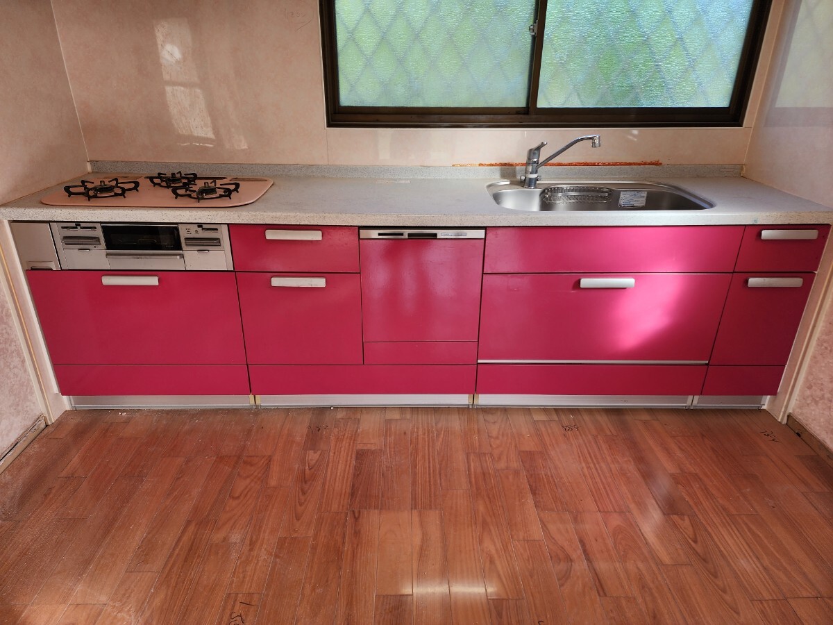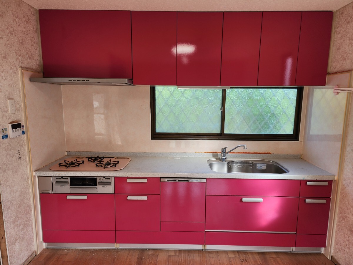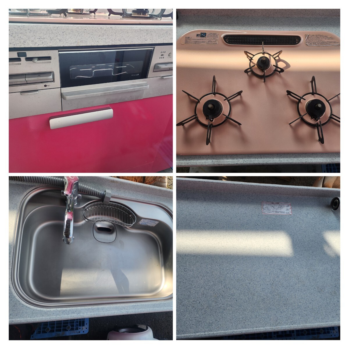 Product name: 福岡県 LIXIL システムキッチン W2850mm 吊戸棚 W1950mm レンジフード 食洗機 ガスコンロ 都市ガス 現状 中古品 引き取り限定