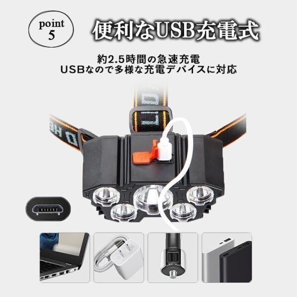 ヘッドライト 充電式 led 最強 ルーメン 防水 広角 釣り 登山 懐中電灯 頭 usb LED ライト 軽い cob 高輝度 ライト (wthl0020) 9