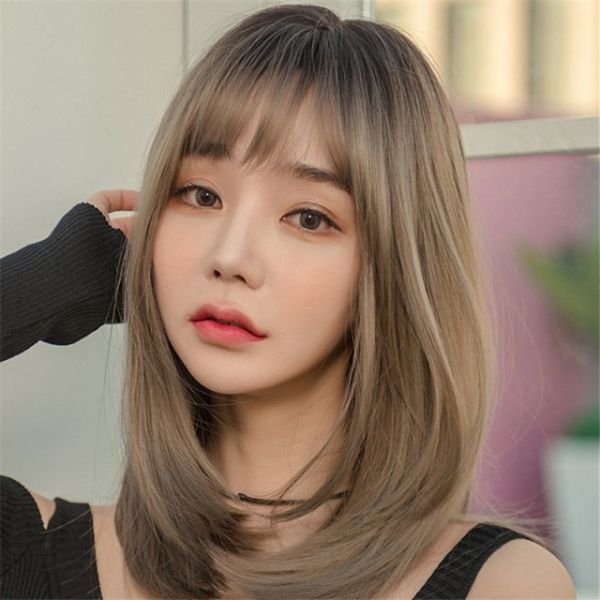 ウィッグ ミディアム セミロング フルウィッグ 自然 医療用 マロングレー 原宿 渋谷系 グラデーション カール ロリータ 混色