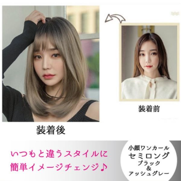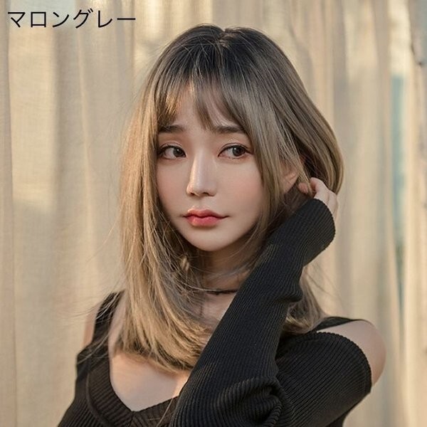 Product name: ウィッグ ミディアム セミロング フルウィッグ 自然 医療用 マロングレー 原宿 渋谷系 グラデーション カール ロリータ 混色
