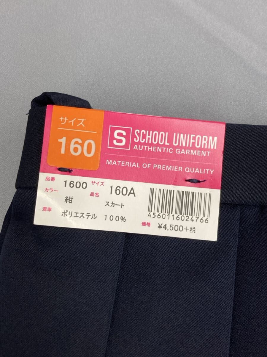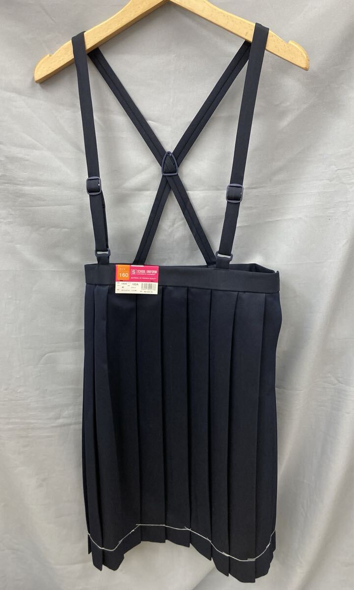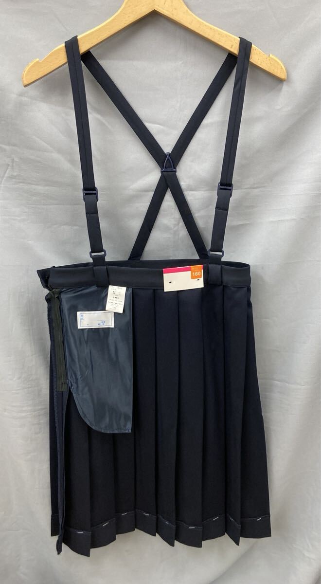 ス-64 制服 スカート 160 A サイズ ネイビー 紺色 スクール ユニホーム 学生服 肩紐付 プリーツ スカート YKK ファスナー
