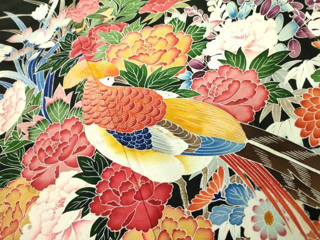 Product name: 平和屋着物■豪華黒留袖 作家物 尾長鳥花文 正絹 逸品 DAAY2194op