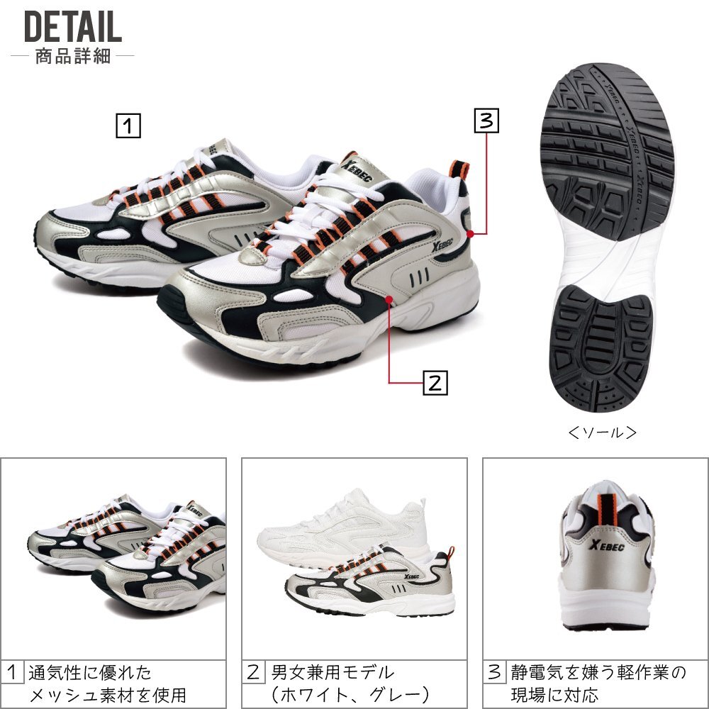 Product name: XEBEC 静電靴 22.5 スニーカー 85803 スポーツシューズ 静電 軽量 耐油 ホワイト ジーベック ★ 対象2点 送料無料 ★