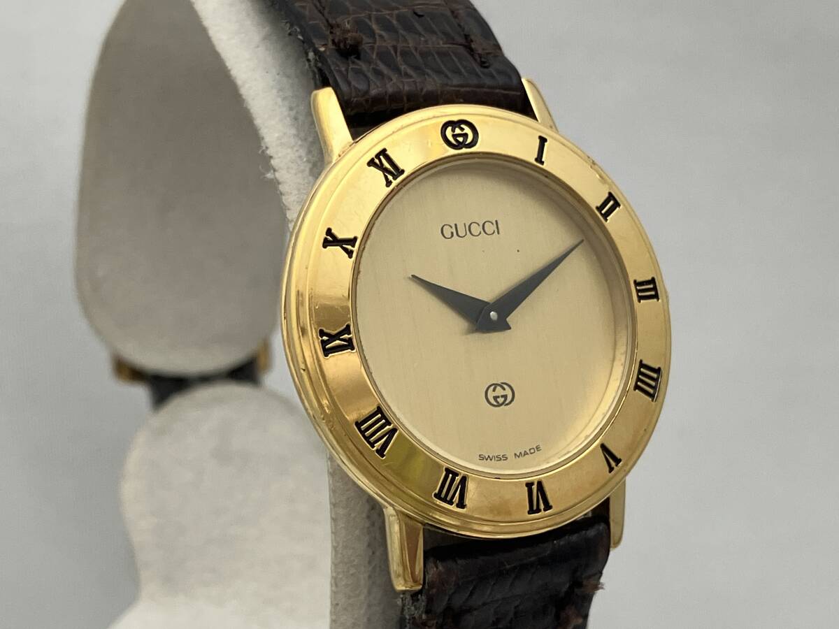 ジャンク GUCCI 3000L ゴールド×ゴールド レディース ローマ数字 ベルト劣化 ケースサイズ横縦約25.5mm クォーツ 不動