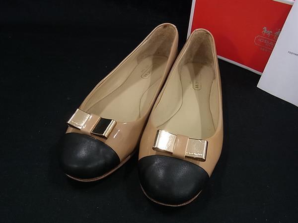 COACH コーチ パテントレザー リボン パンプス バレエシューズ 表記サイズ 37.5(約24.5cm) 靴 シューズ レディース ベージュ系 DI5440