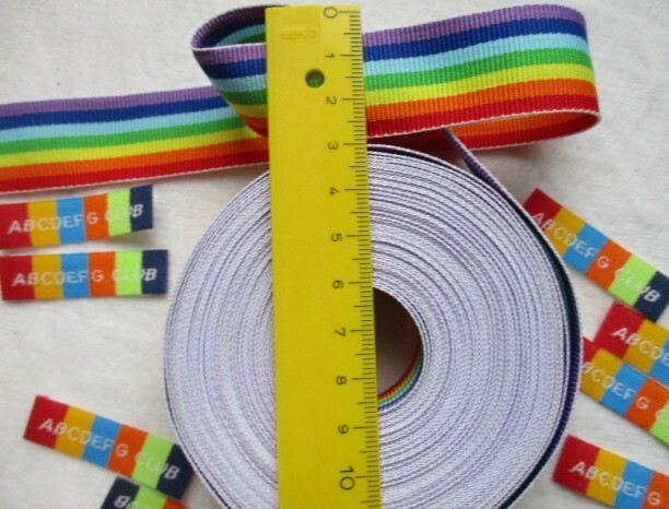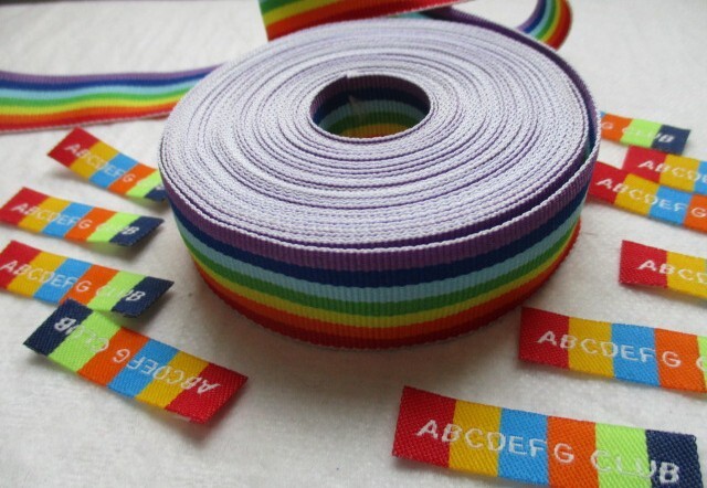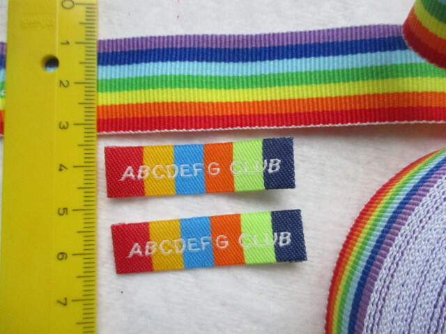 Product name: R05◆レインボーカラー・ 25ミリ幅リボン 10m・刺繍タグ 10個