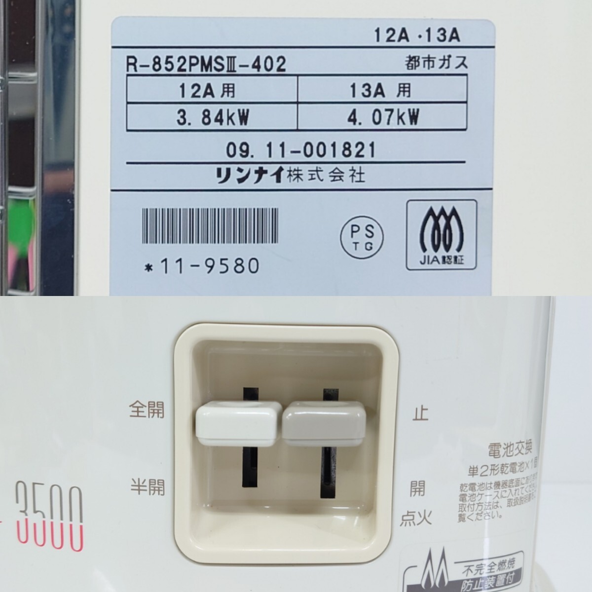 Product name: 【K1156】 Rinnai Ceramic Heater 3500 R-852PMSⅢ リンナイ セラミックヒーター 都市ガス 赤外線ストーブ 暖房器具