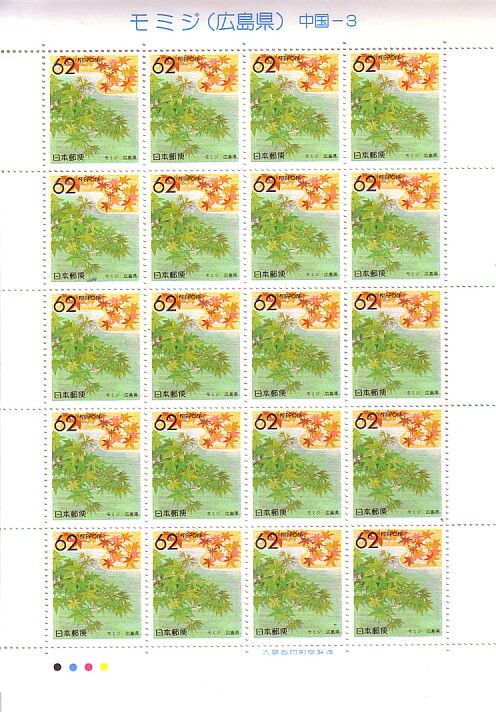 「モミジ(広島県)」の記念切手です(62円切手X20枚)。送料は普通140円(普通便 複数同梱発送では180円)になります。