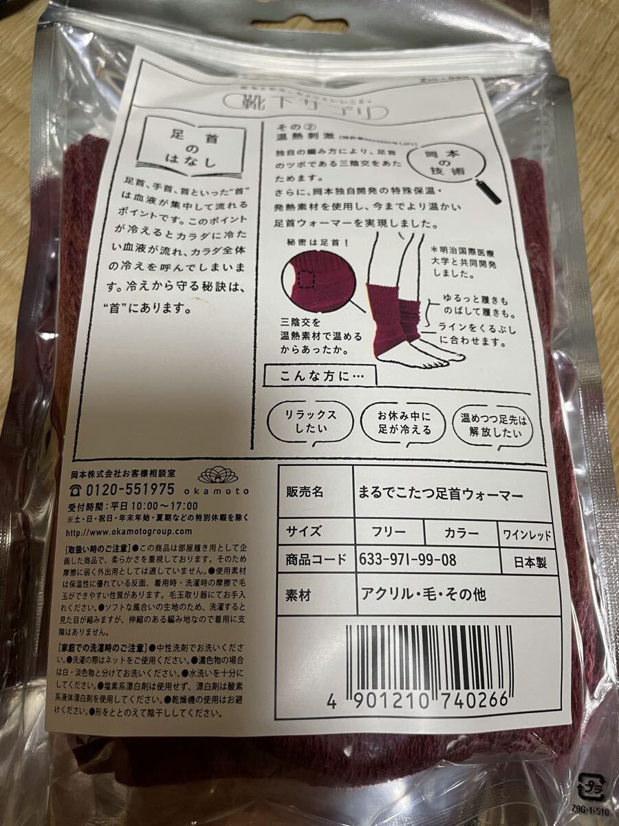 Product name: ☆☆靴下サプリ.まるでこたつ足首ウォーマー.フリー.ワインレッド☆☆ オカモト