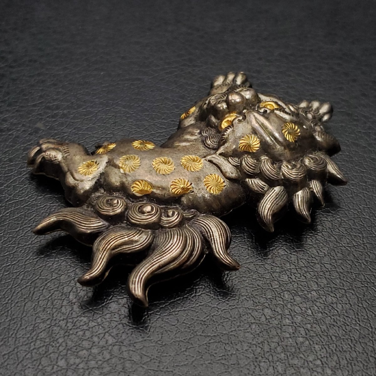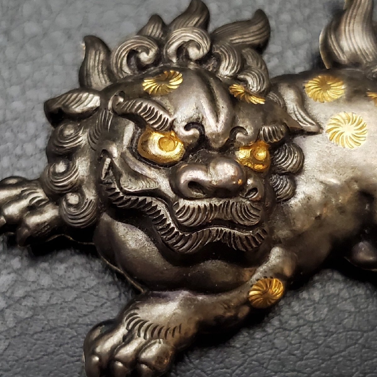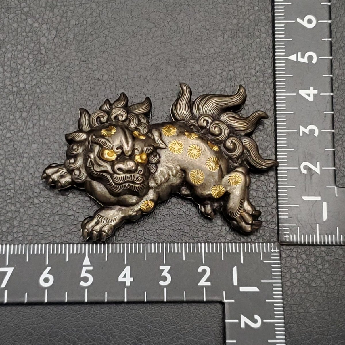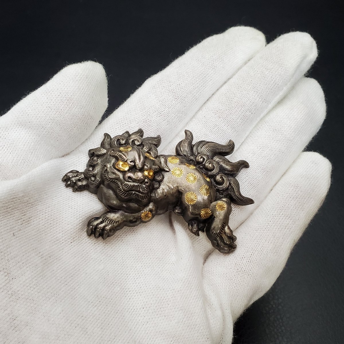 Product name: 【宝蔵】金属工芸 唐獅子 帯留め 約6㎝ 17.95g 和装小物