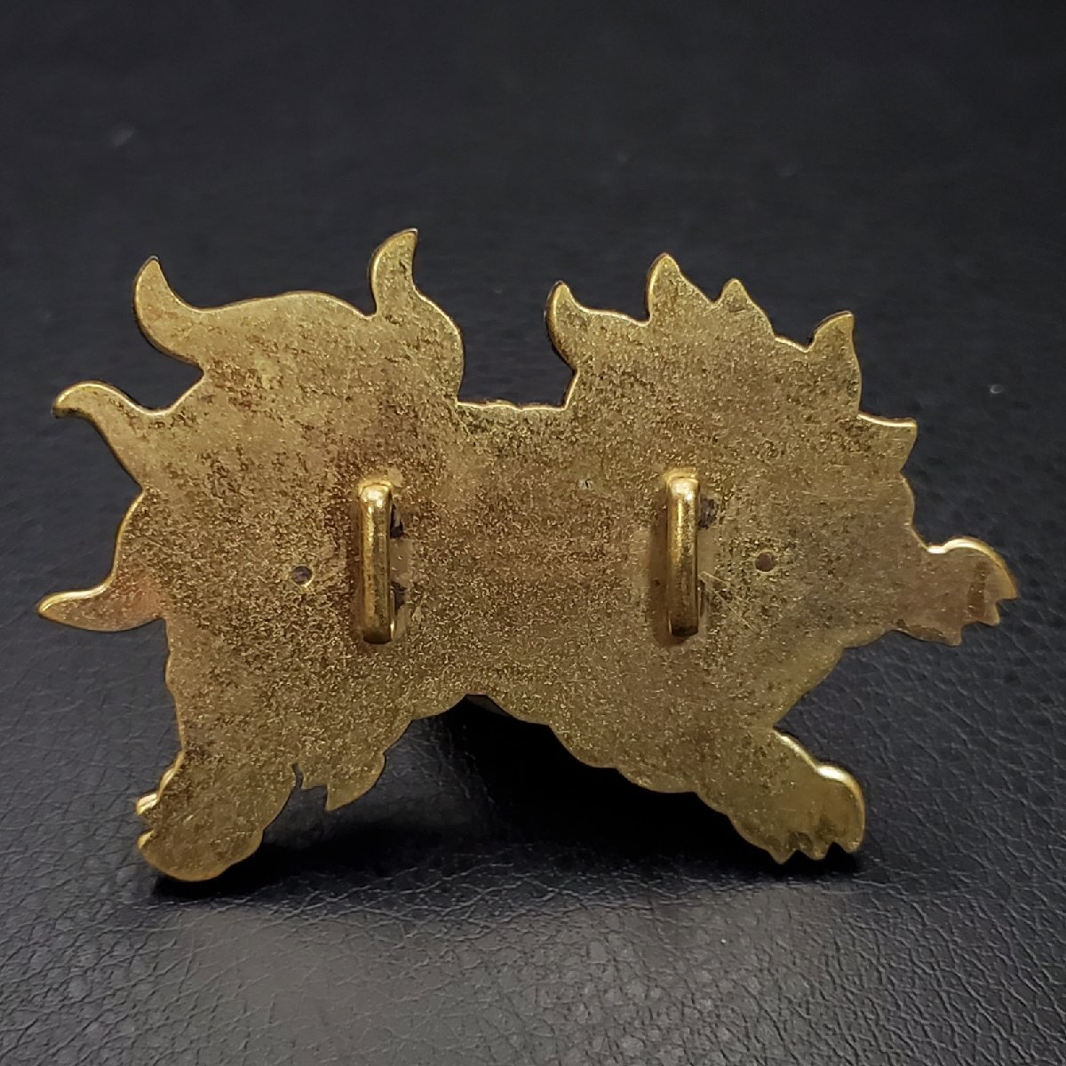 【宝蔵】金属工芸 唐獅子 帯留め 約6㎝ 17.95g 和装小物