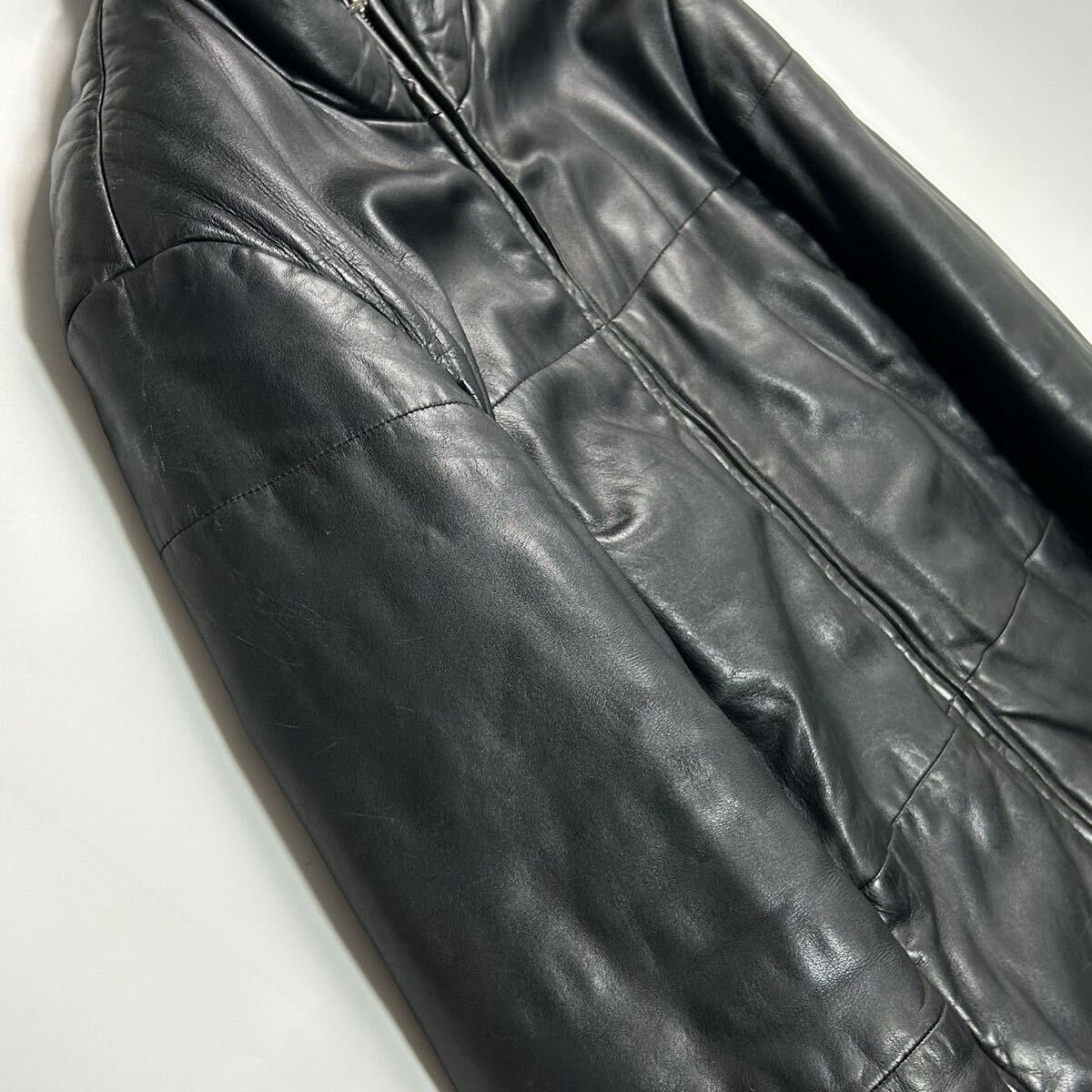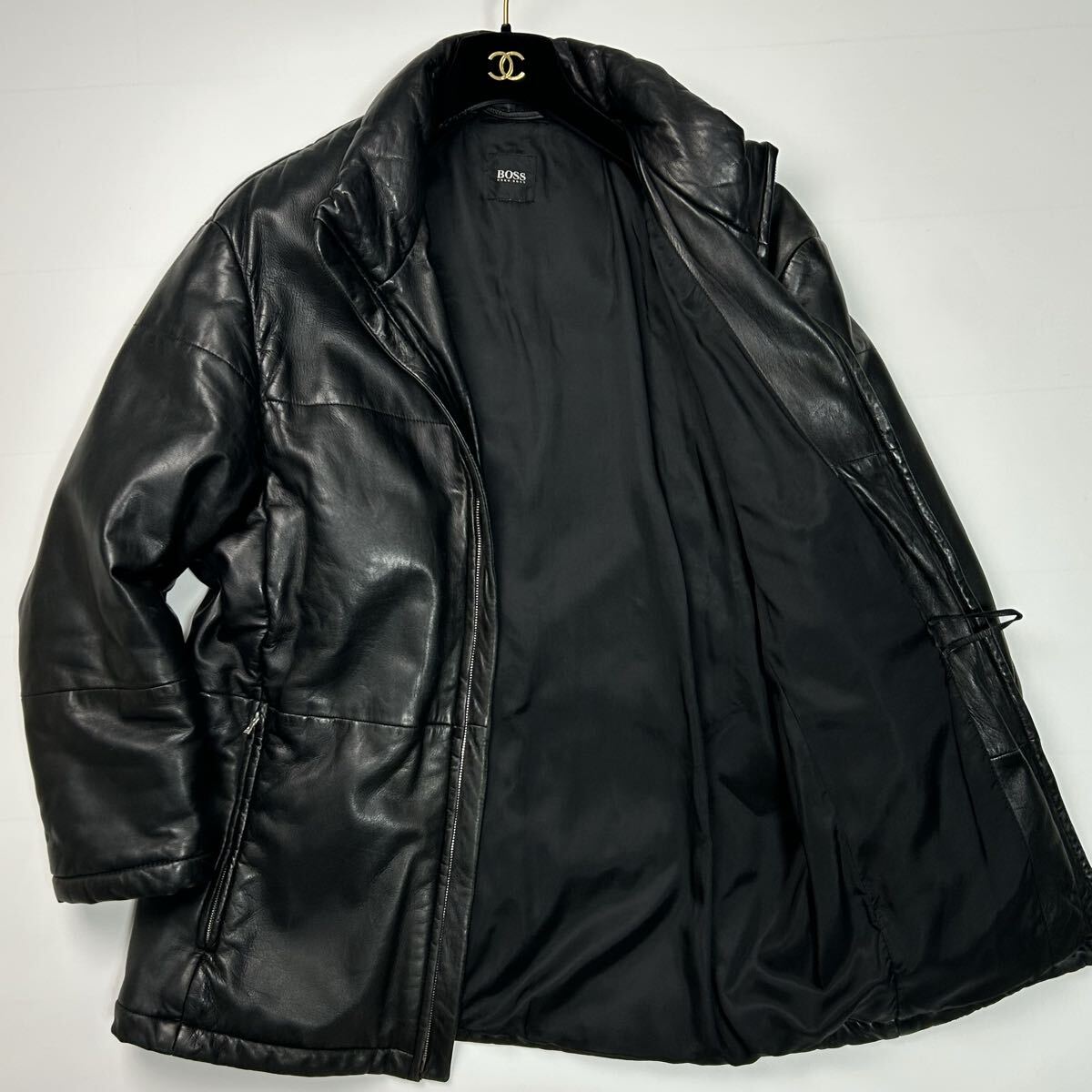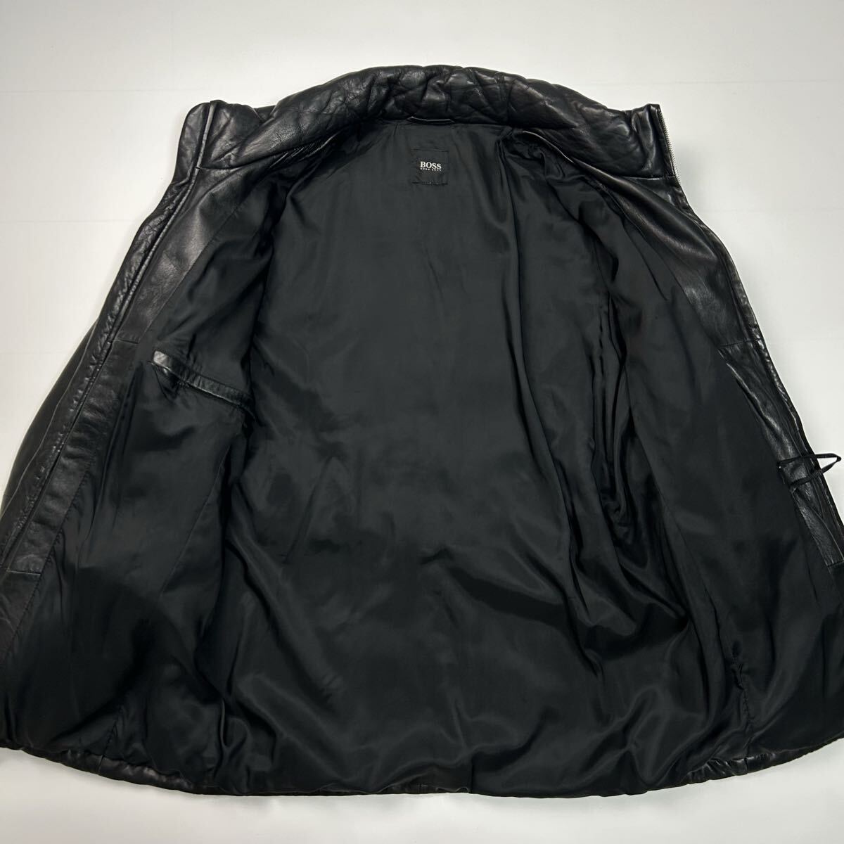美品★ Lサイズ相当 HUGO BOSS ヒューゴボス ラムレザー レザージャケット コート 肉厚 アウター 上着 フード 最高級 レザー 本革