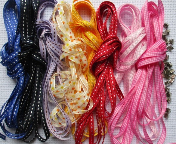 Product name: R57◆5ミリ幅リボン・8種-各 400cm・チョーカー金具32個