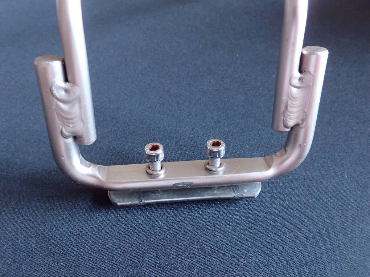 サドルのレールを挟んで付けるタイプです。アルミ製ですが結構しっかりした作りです。革サドルのランドナーや最近のグラベルロードにに合う雰囲気です。