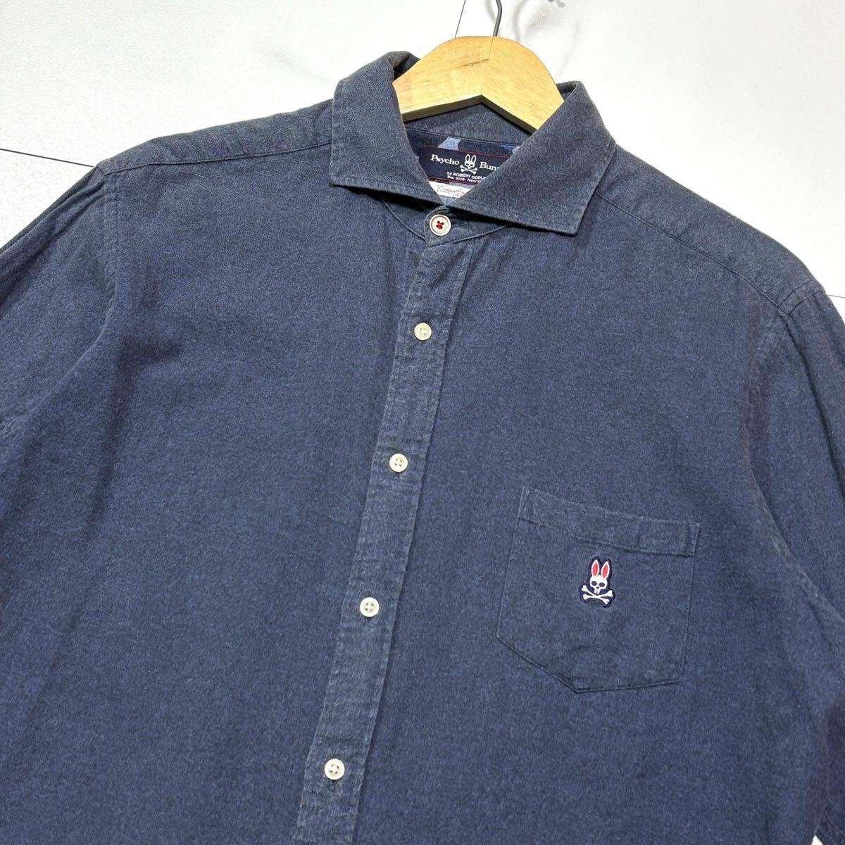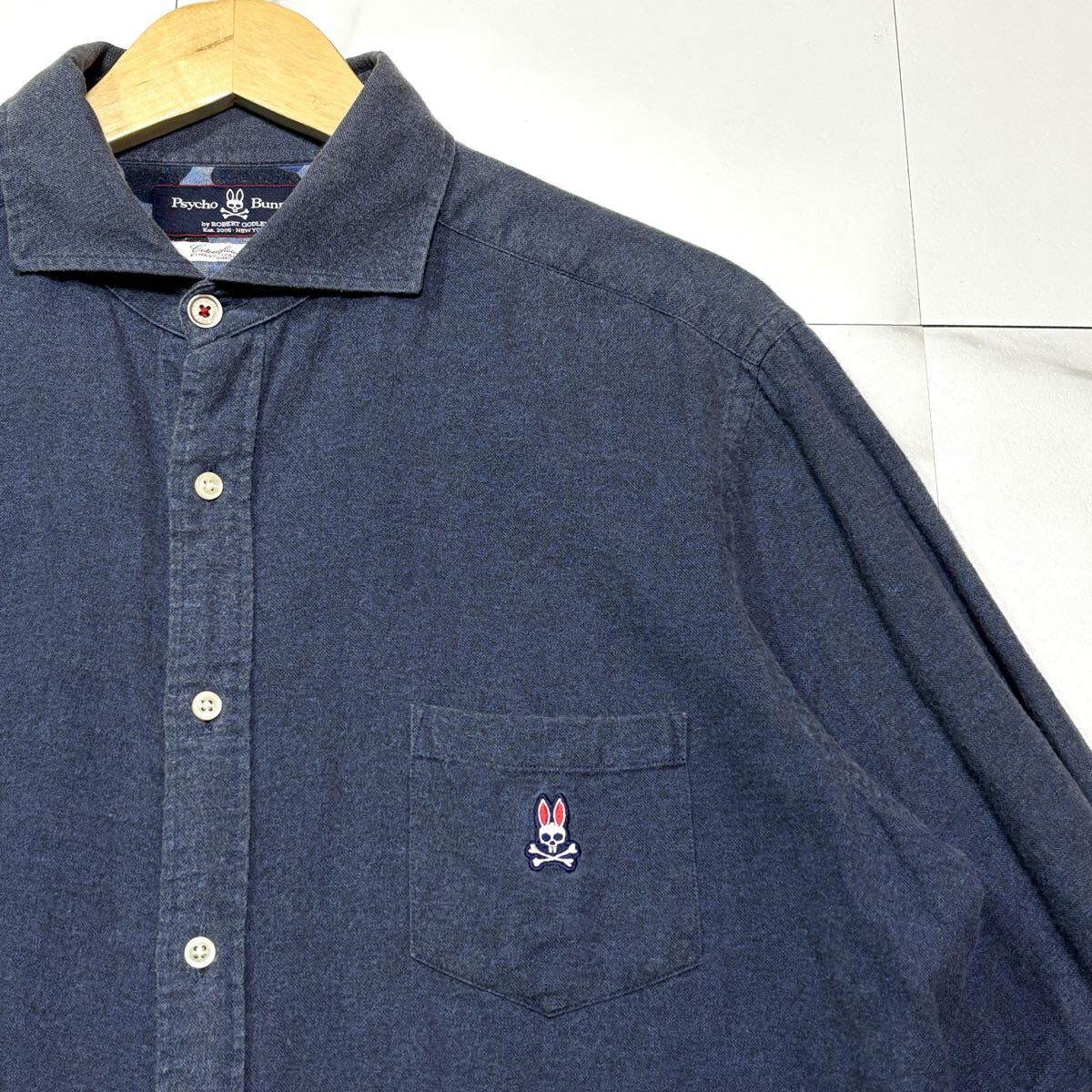 美品/ XLサイズ Psycho Bunny サイコバニー シャツ 長袖 スカルバニー GOLF ゴルフウェア 3連スカル ネイビー