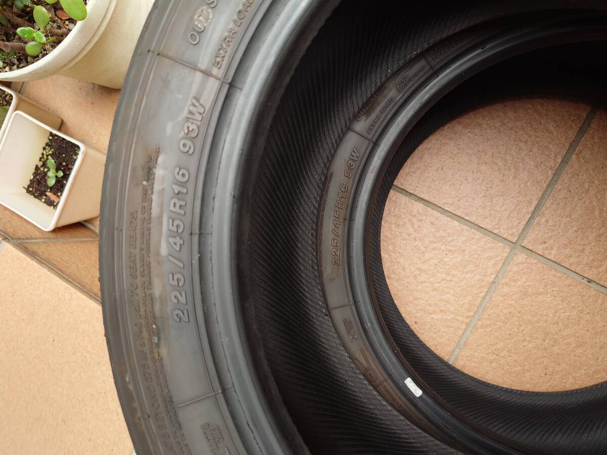 YOKOHAMA製のラジアルタイヤです。残り山は3~2部山程度です。