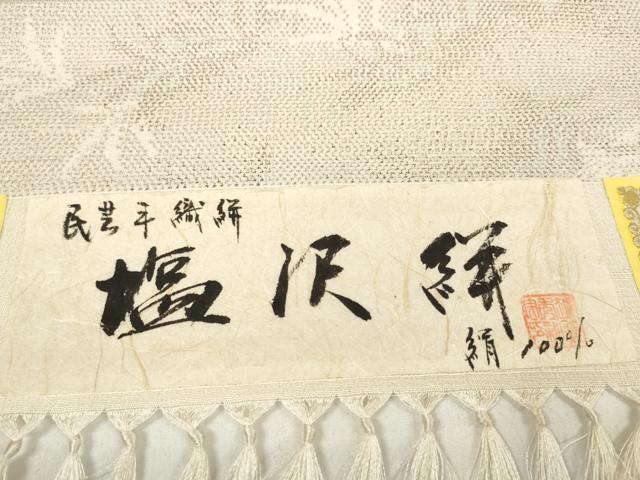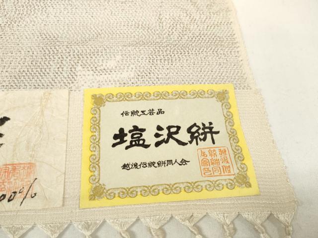 平和屋着物▼紬 反物 着尺 塩沢絣 草葉文 証紙付き 逸品 未使用 DAAW7295zzz