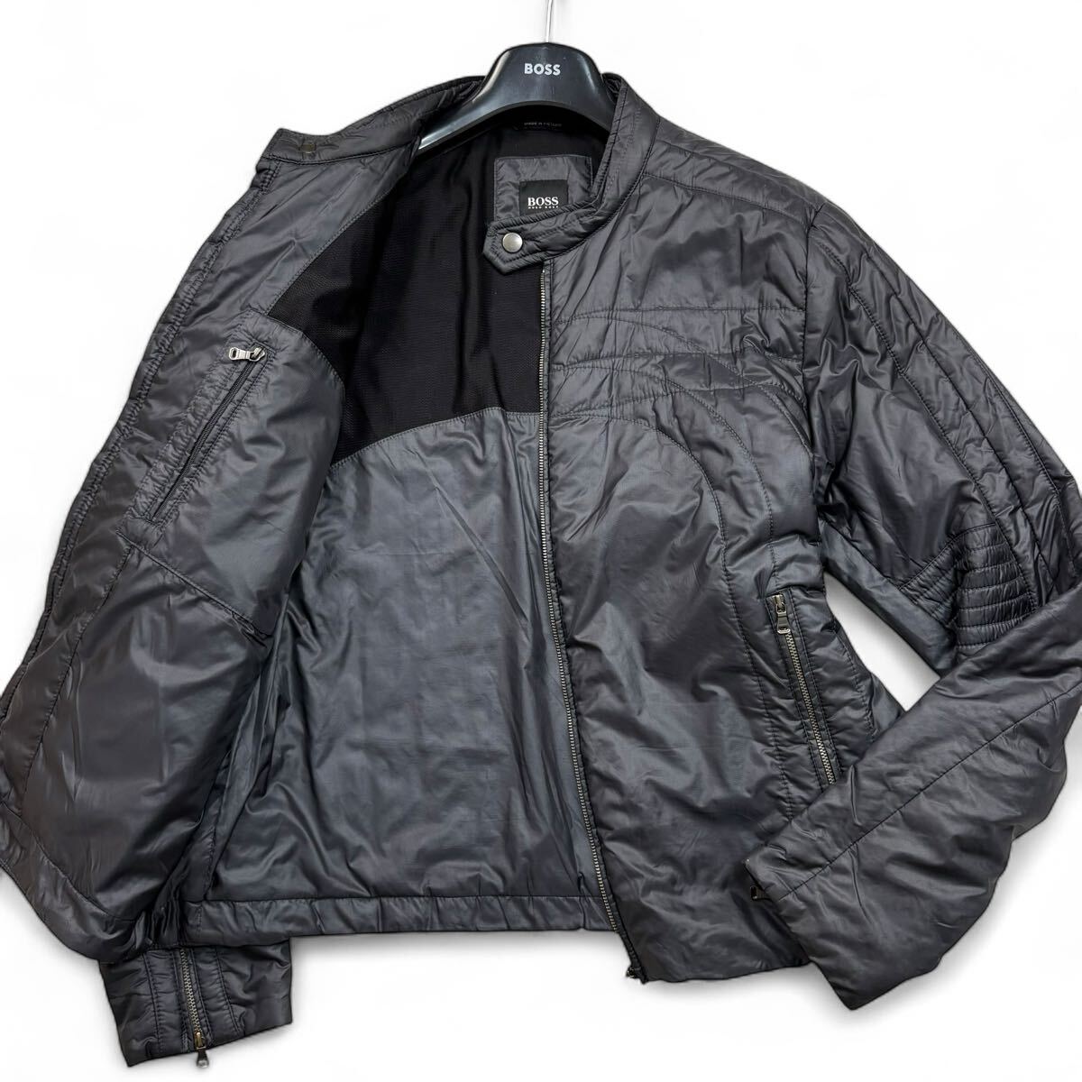 Product name: 【極美品XXXLサイズ!!!】HUGO BOSS ヒューゴボス ライダースナイロンジャケット ジップアップブルゾン メンズ サイズ54 ダークグレー