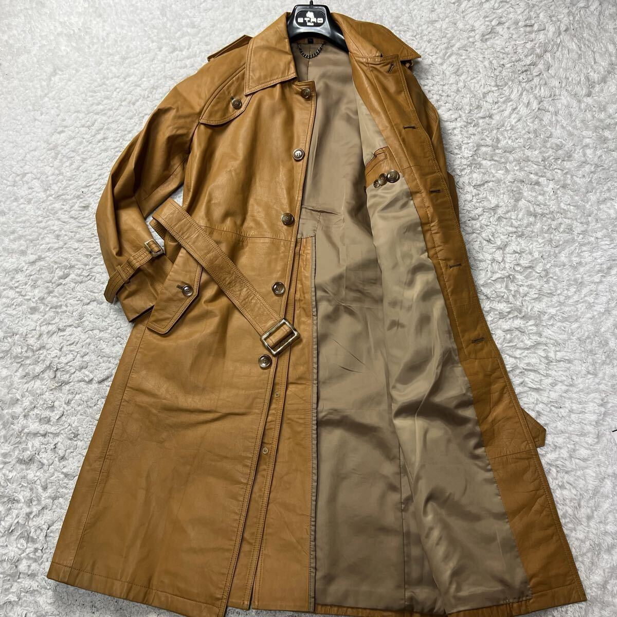 【極美品】レザーロングトレンチコート ウエストベルト Lサイズ 牛革 カウハイド キャメル色 美シルエット 極暖 カジュアル ビジネス
