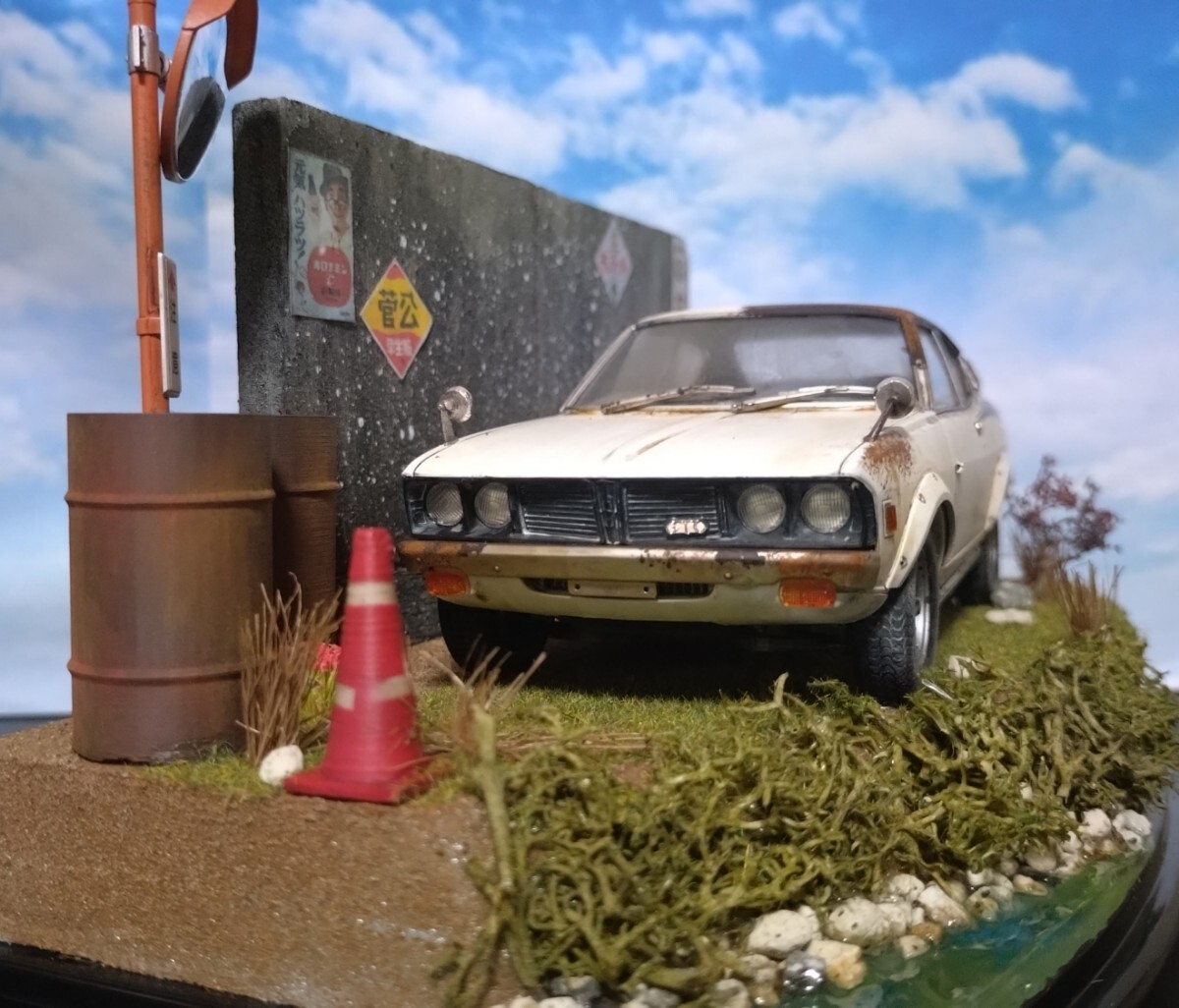 1/24 三菱 ギャランGTO 2000GSR 自作情景 ジオラマ完成品です。