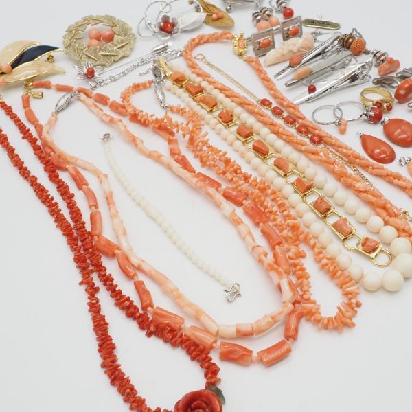 (SM1008) 1円 珊瑚 アクセサリー 大量セット サンゴ コーラル ネックレス ペンダントトップ イヤリング ブローチ 指輪 等 まとめて