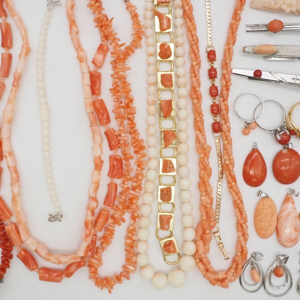 Product name: (SM1008) 1円 珊瑚 アクセサリー 大量セット サンゴ コーラル ネックレス ペンダントトップ イヤリング ブローチ 指輪 等 まとめて
