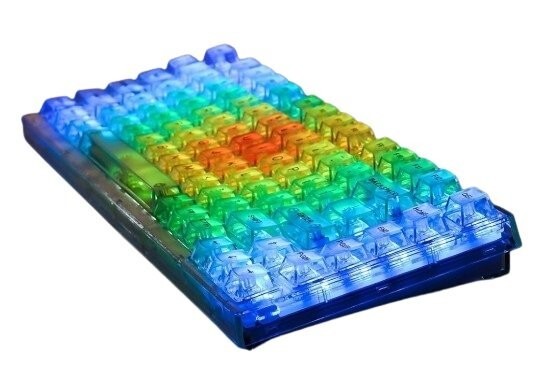 透明性を極限まで追求し、最高級のPC素材でキーキャップを成形し、デジタル印刷プロセスで文字を印刷しています / キーキャップセットは、彫刻的な形状のキーが好きな人のためにASAプロファイルで設計され、列ごとに異なる高さの人間工学的なタイピング体験を提供します / 工場出荷時に設定されている最大15個のライトと音楽リズムモードは、キーボードから自由に選択できます / 新しいエフェクトをデザインするためのカスタムソフトウェアも用意されています / マクロを作り、キーごとの照明やエフェクトを設定することができます