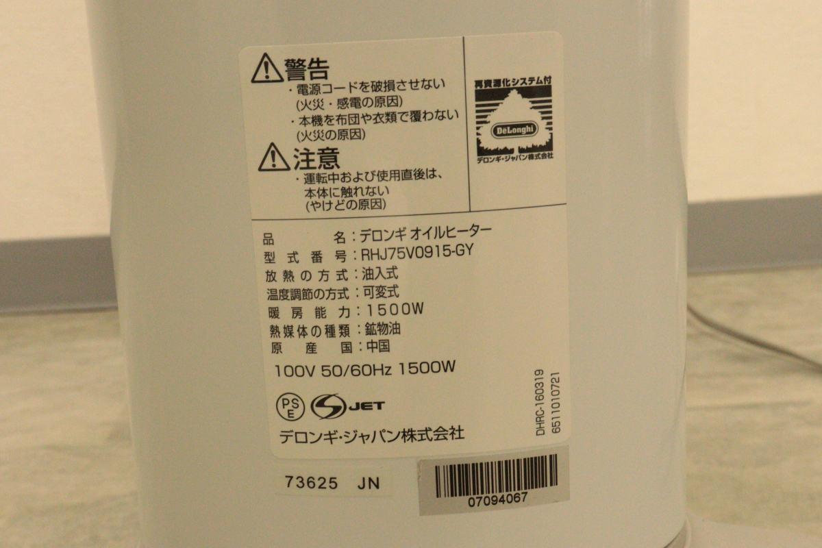 Product name: 【動作OK】DeLonghi RHJ75V0915-GY デロンギ オイルヒーター 暖房器具 油入式 1500W 100V 50/60Hz 暖房器 生活家電 家電_IID_C1014-I00E
