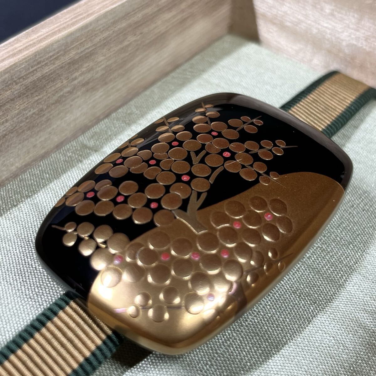 Product name: 片山 雅博 作 帯留め 本鼈甲 蒔絵梅 黒甲 梅の花 日本漆芸工芸 共箱・桐箱付き 美品