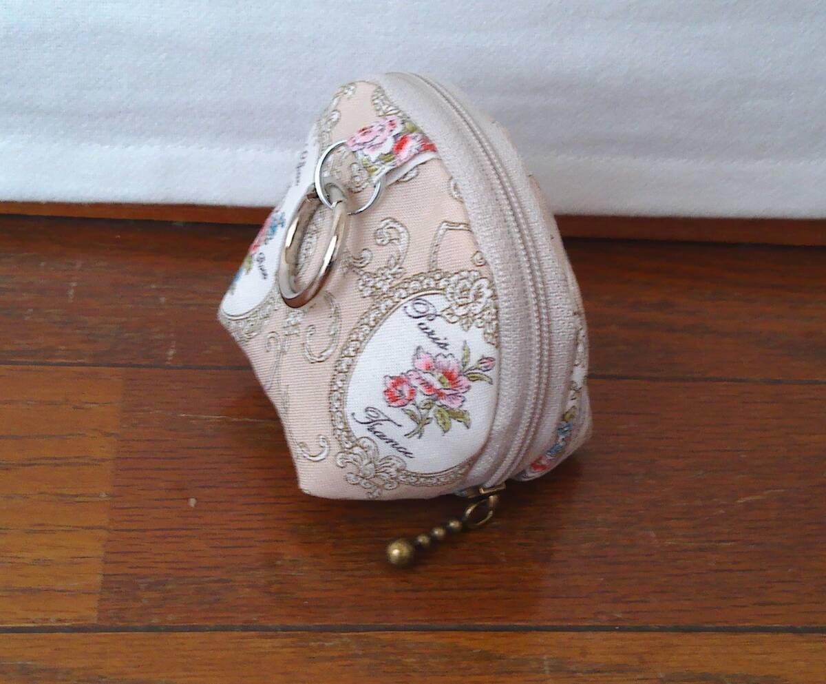 リングタブに丸いカラビナを付けた小さなポーチです。